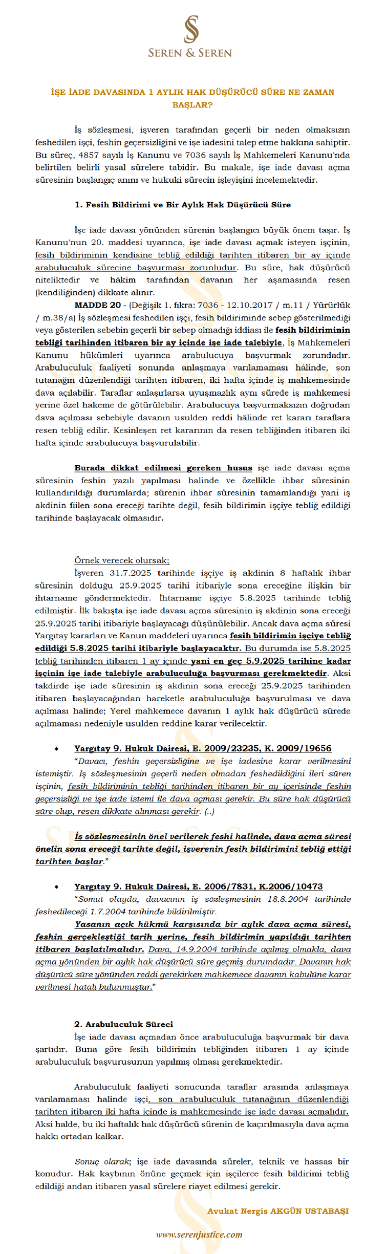 İŞE İADE DAVASINDA 1 AYLIK HAK DÜŞÜRÜCÜ SÜRE NE ZAMAN BAŞLAR?