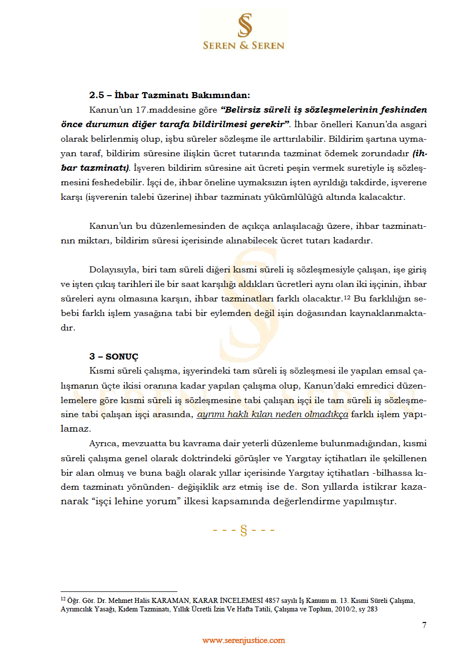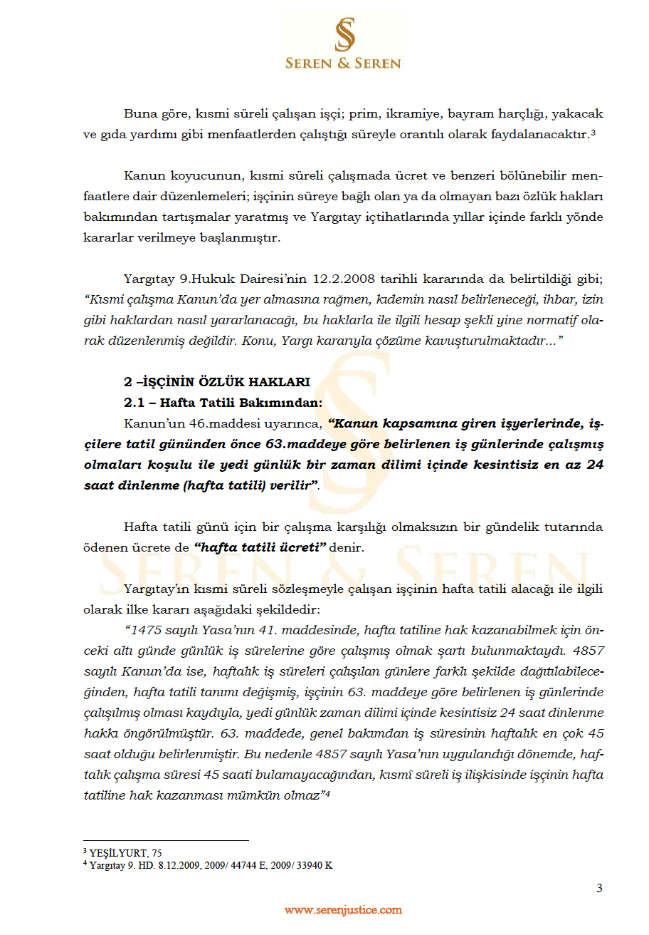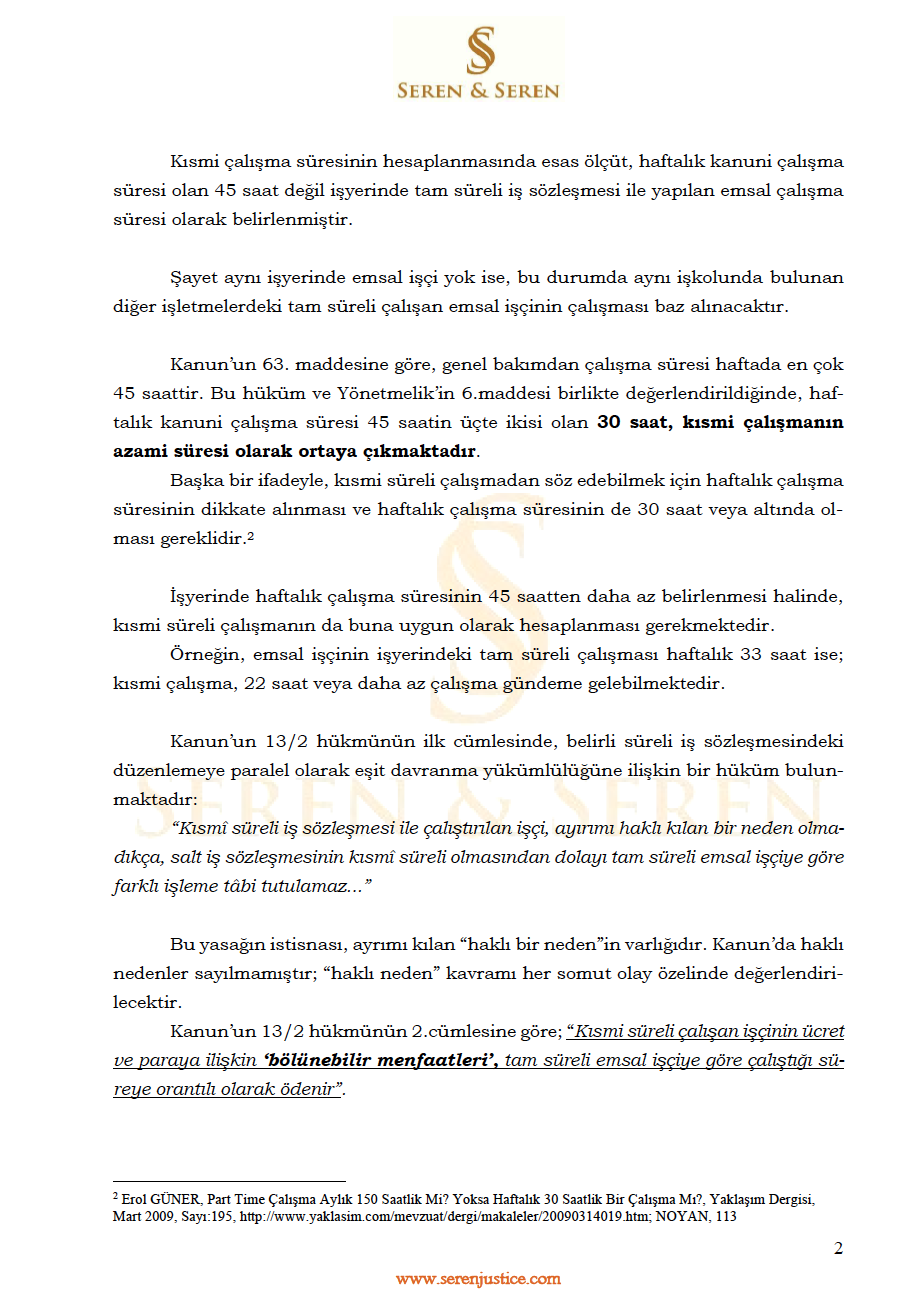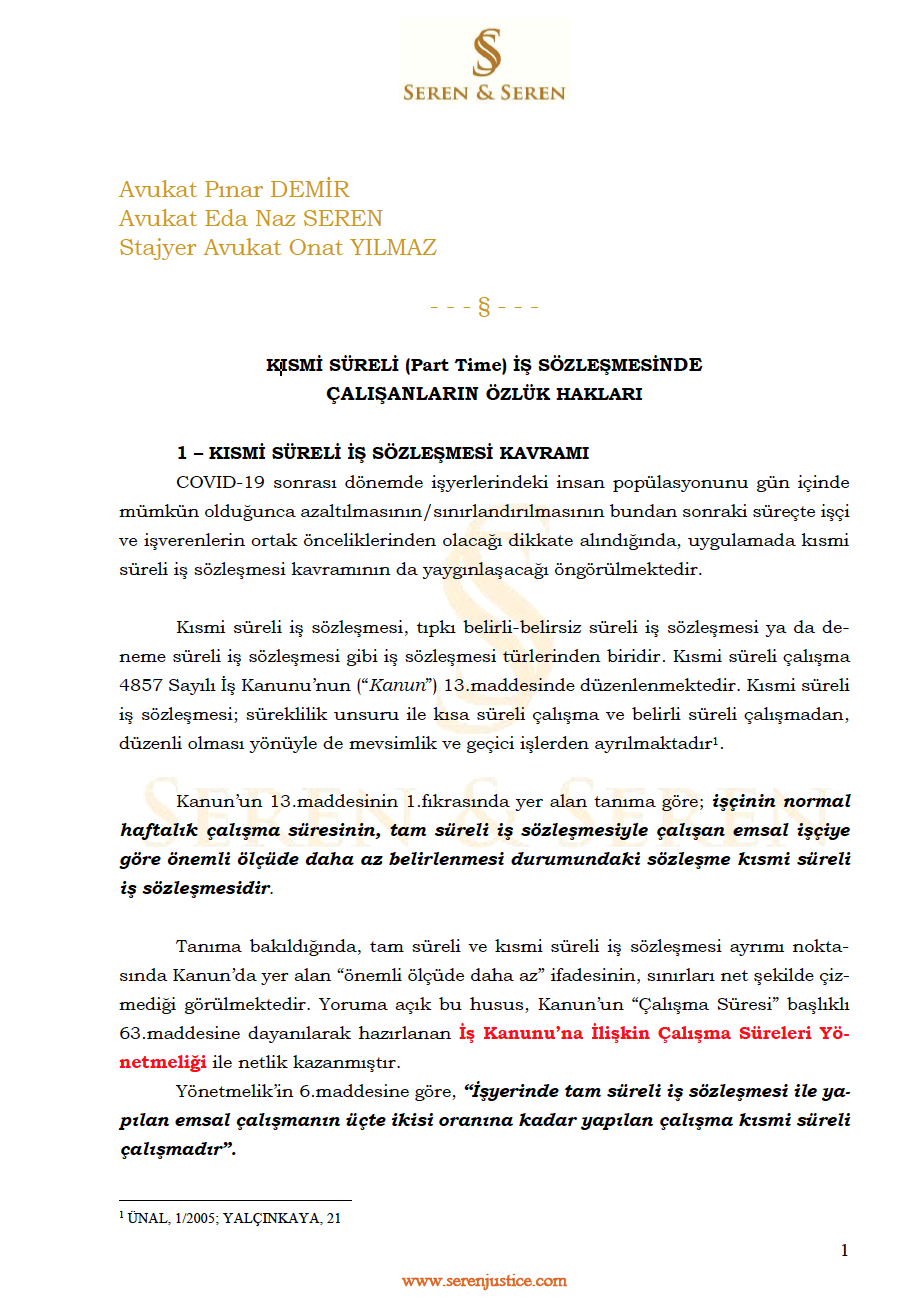 KISMİ SÜRELİ (Part Time) İŞ SÖZLEŞMESİNDE ÇALIŞANLARIN HUKUKÎ STATÜSÜ