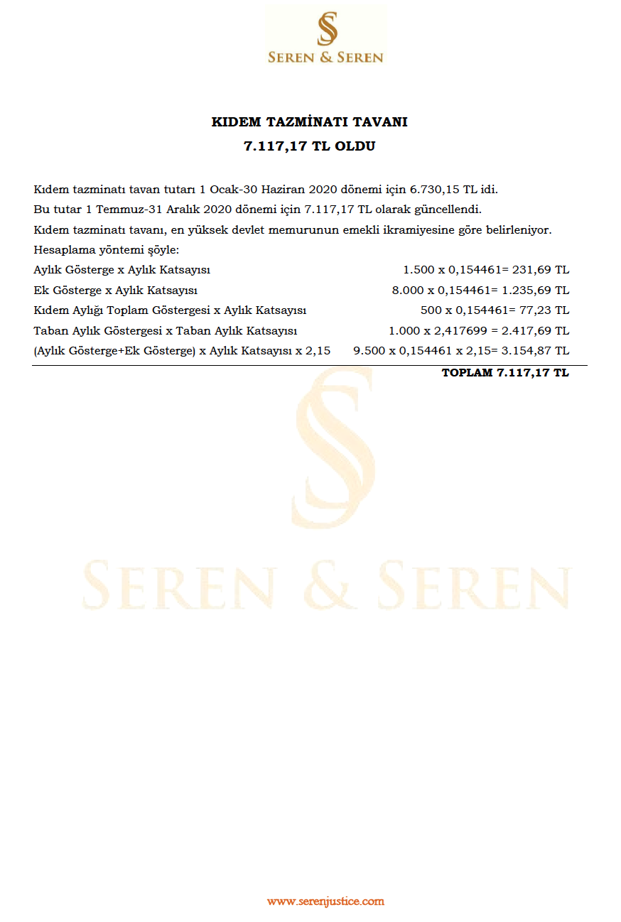 KIDEM TAZMİNATINDA YENİ TAVAN: 7.117,17 TL