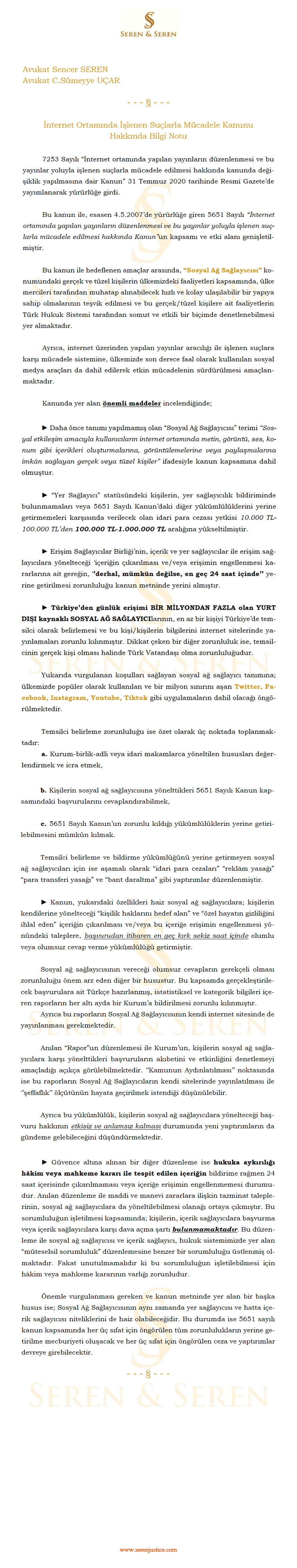 İnternet Ortamında İşlenen Suçlarla Mücadele Kanunu Hakkında Bilgi Notu