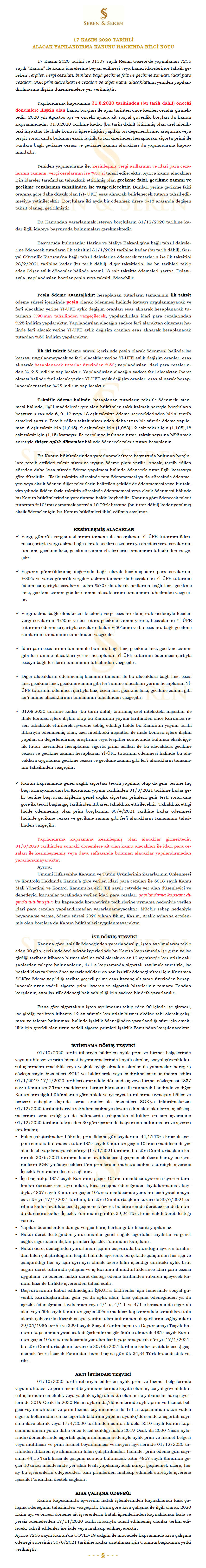 17.11.2020 tarih ve 7256 Sayılı Alacakların Yapılandırılması Kanunu Hakkında Bilgi Notu