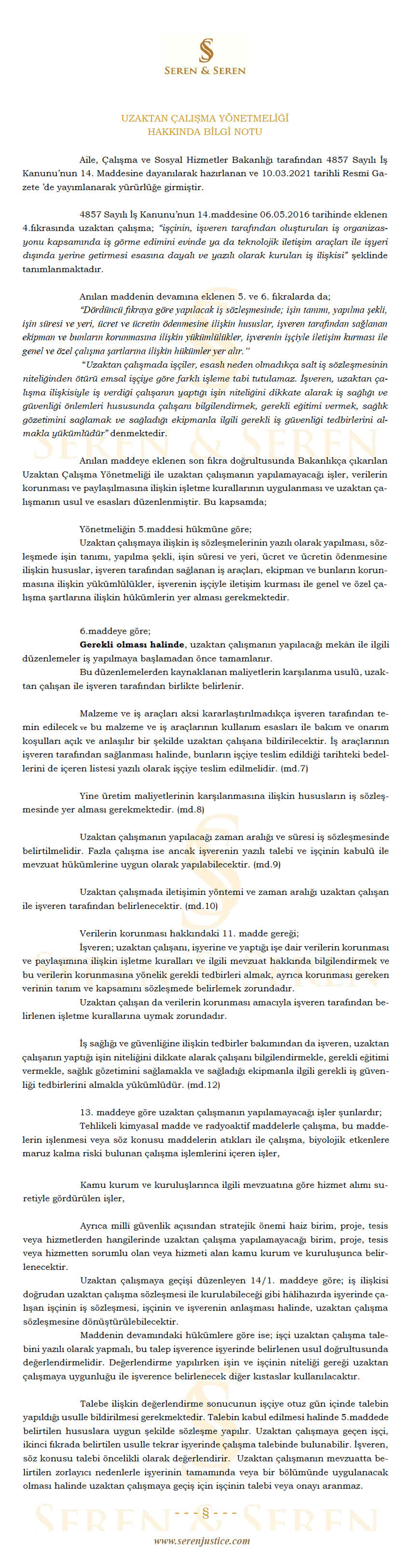 UZAKTAN ÇALIŞMA YÖNETMELİĞİ HAKKINDA BİLGİ NOTU