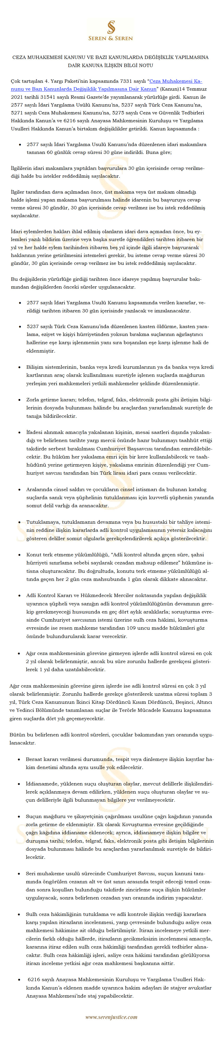 CEZA MUHAKEMESİ KANUNU VE BAZI KANUNLARDA DEĞİŞİKLİK YAPILMASINA DAİR KANUNA İLİŞKİN BİLGİ NOTU