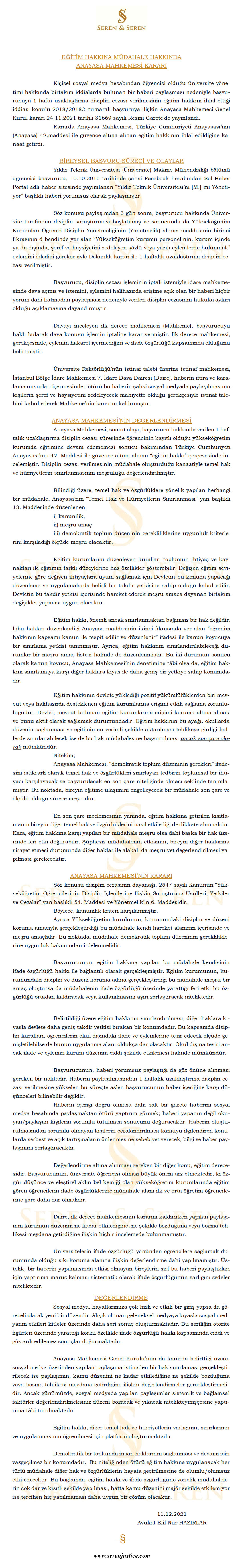 EĞİTİM HAKKINA MÜDAHALE HAKKINDA ANAYASA MAHKEMESİ KARARI