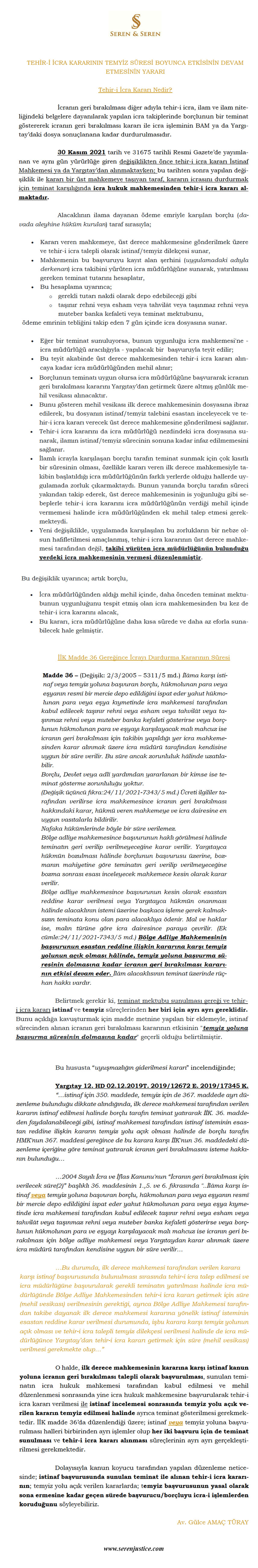 TEHİR-İ İCRA KARARININ TEMYİZ SÜRESİ BOYUNCA ETKİSİNİN DEVAM ETMESİNİN YARARI