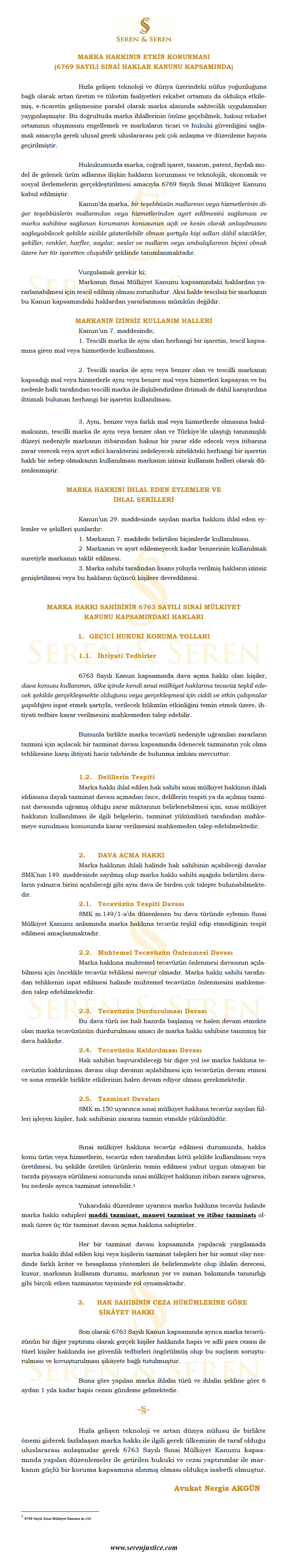 MARKA HAKKININ ETKİN KORUNMASI (6769 SAYILI SINAİ HAKLAR KANUNU KAPSAMINDA)