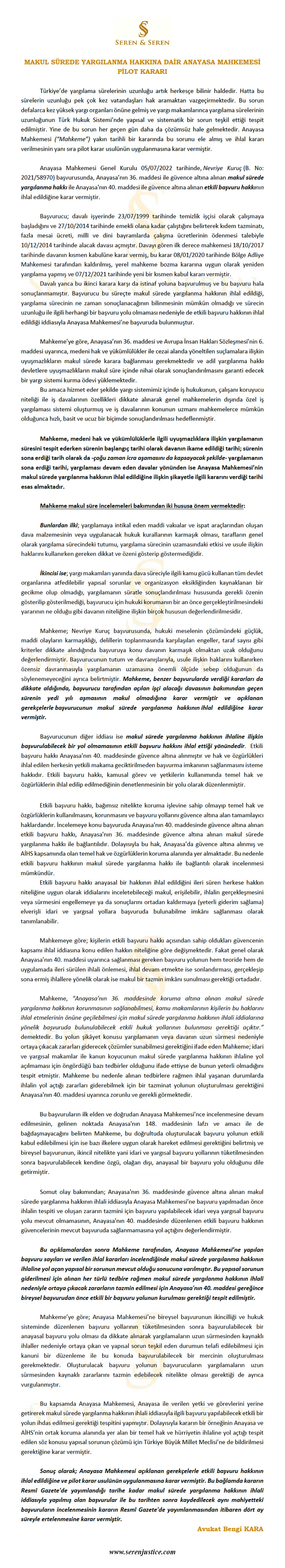 MAKUL SÜREDE YARGILANMA HAKKINA DAİR ANAYASA MAHKEMESİ PİLOT KARARI