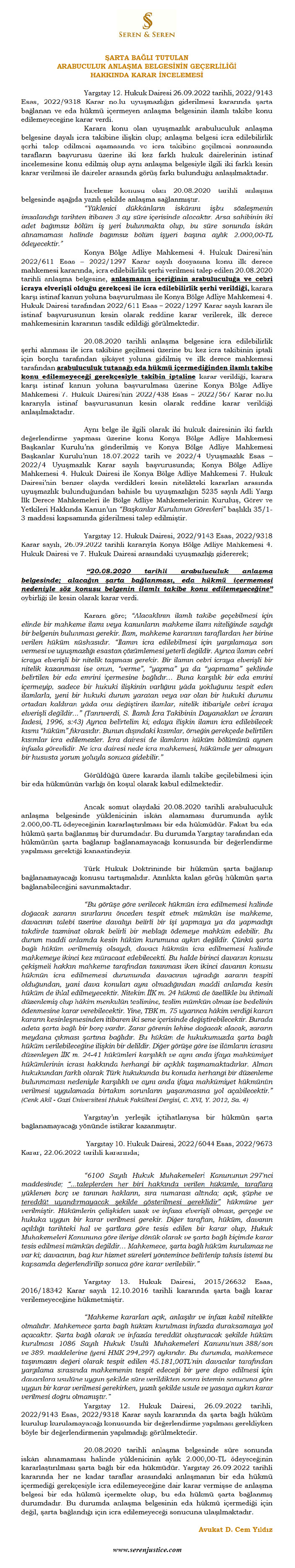ŞARTA BAĞLI TUTULAN ARABUCULUK ANLAŞMA BELGESİNİN GEÇERLİLİĞİ HAKKINDA KARAR İNCELEMESİ