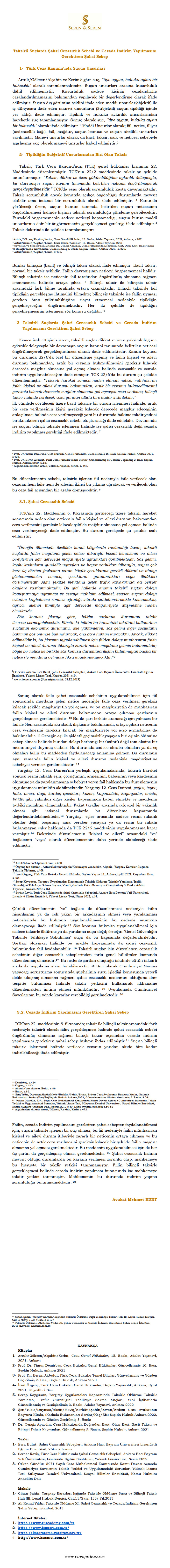 TAKSİRLİ SUÇLARDA ŞAHSİ CEZASIZLIK SEBEBİ ve CEZADA İNDİRİM YAPILMASINI GEREKTİREN ŞAHSİ SEBEP