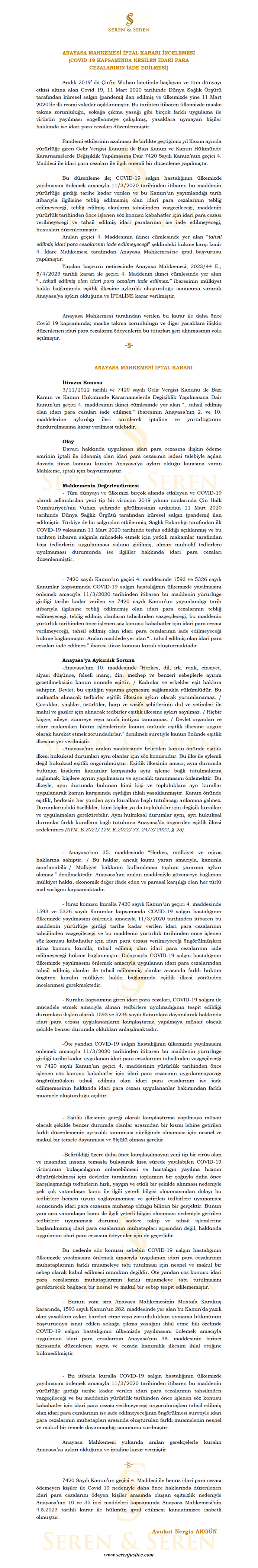 ANAYASA MAHKEMESİ İPTAL KARARI İNCELEMESİ (COVID 19 KAPSAMINDA KESİLEN İDARİ PARA CEZALARININ İADE EDİLMESİ)