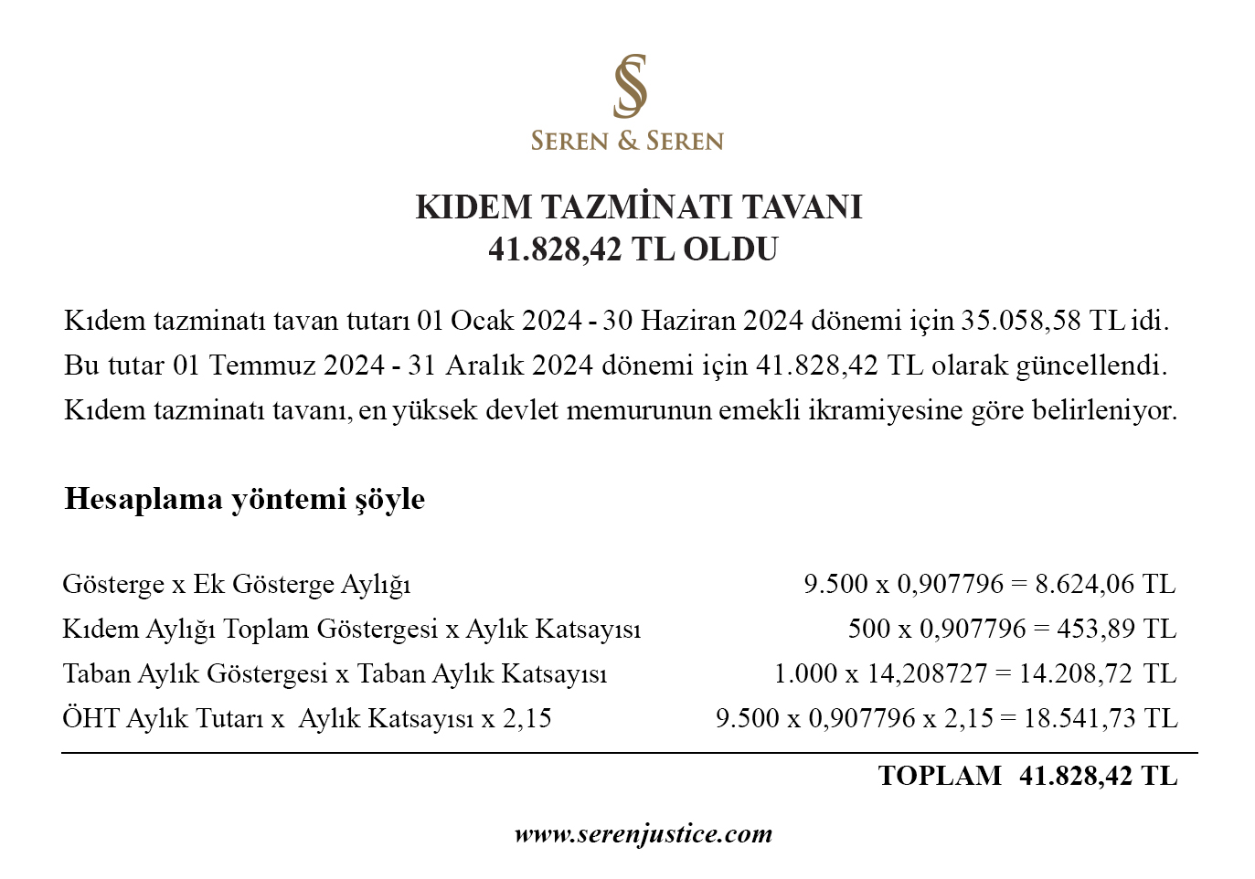 KIDEM TAZMİNATI TAVANI 41.828,42 TL OLDU!!