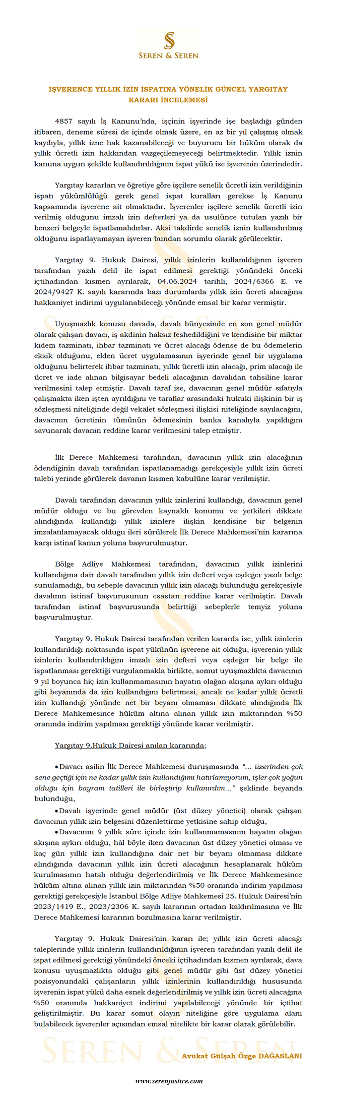 İŞVERENCE YILLIK İZİN İSPATINA YÖNELİK GÜNCEL YARGITAY KARARI İNCELEMESİ