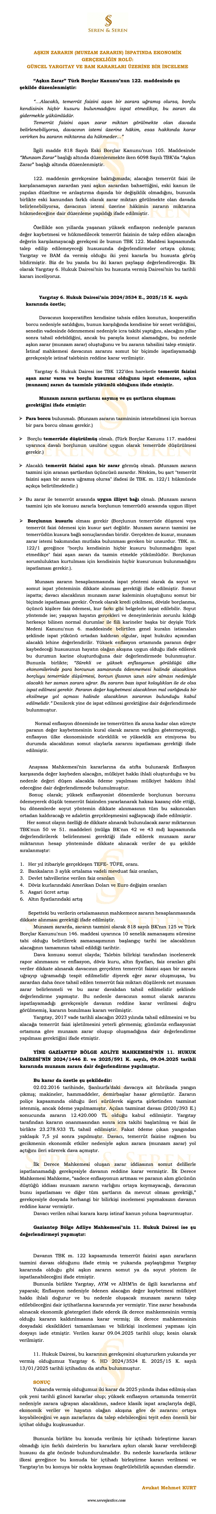 AŞKIN ZARARIN (MUNZAM ZARARIN) İSPATINDA EKONOMİK GERÇEKLİĞİN ROLÜ: GÜNCEL YARGITAY VE BAM KARARLARI ÜZERİNE BİR İNCELEME