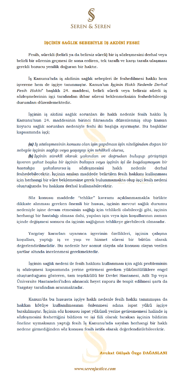 İŞÇİNİN SAĞLIK SEBEBİYLE İŞ AKDİNİ FESHİ