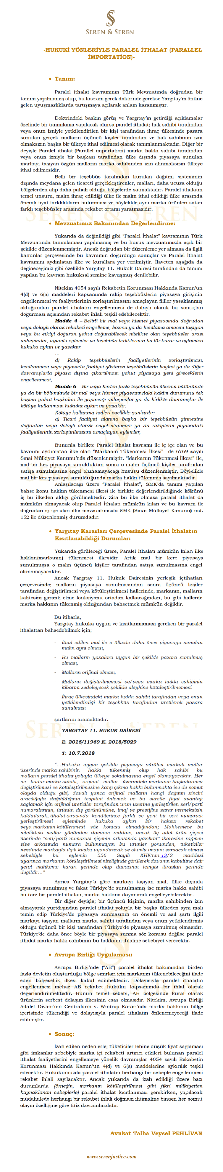 HUKUKİ YÖNLERİYLE PARALEL İTHALAT (PARALLEL İMPORTATİON)