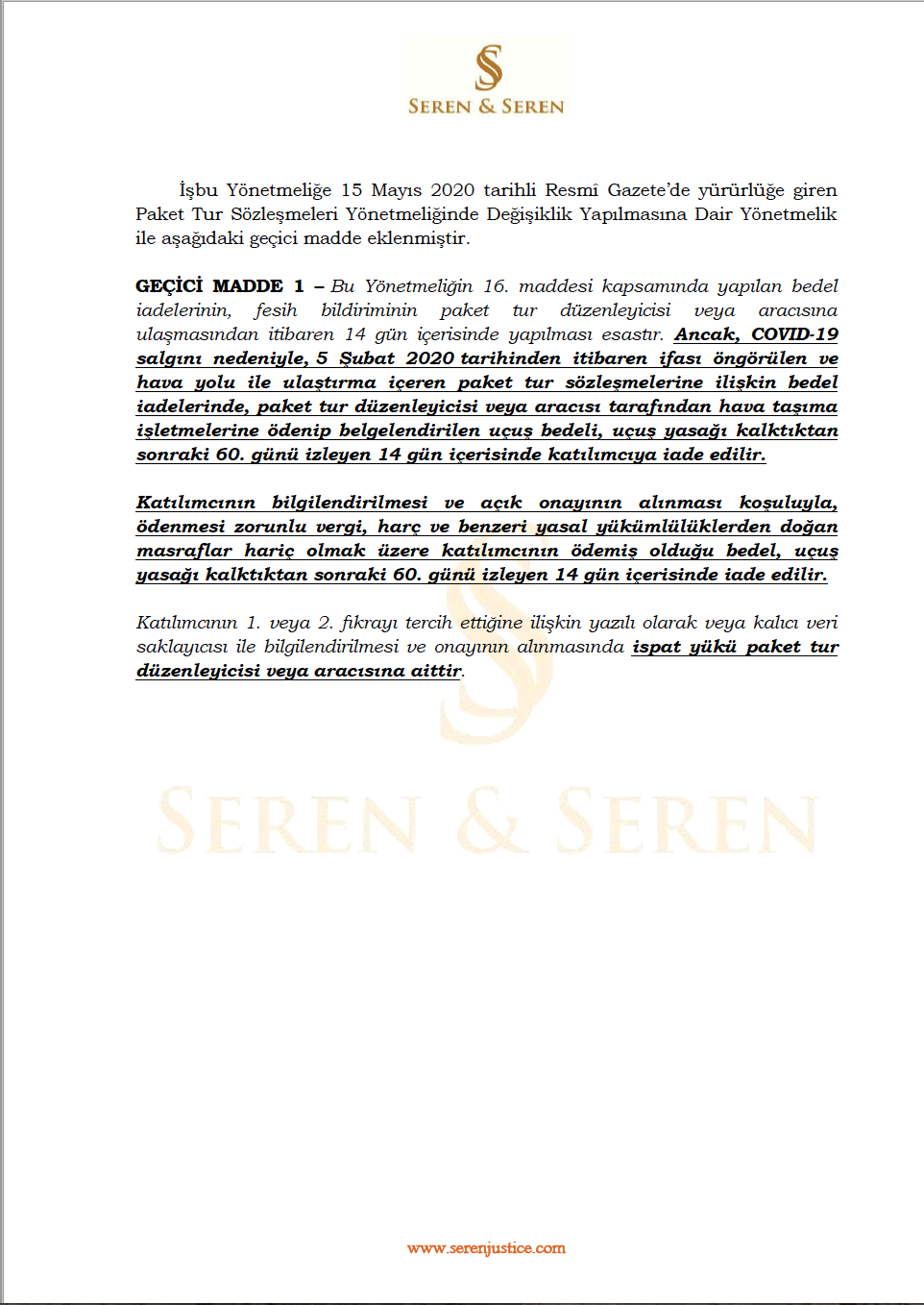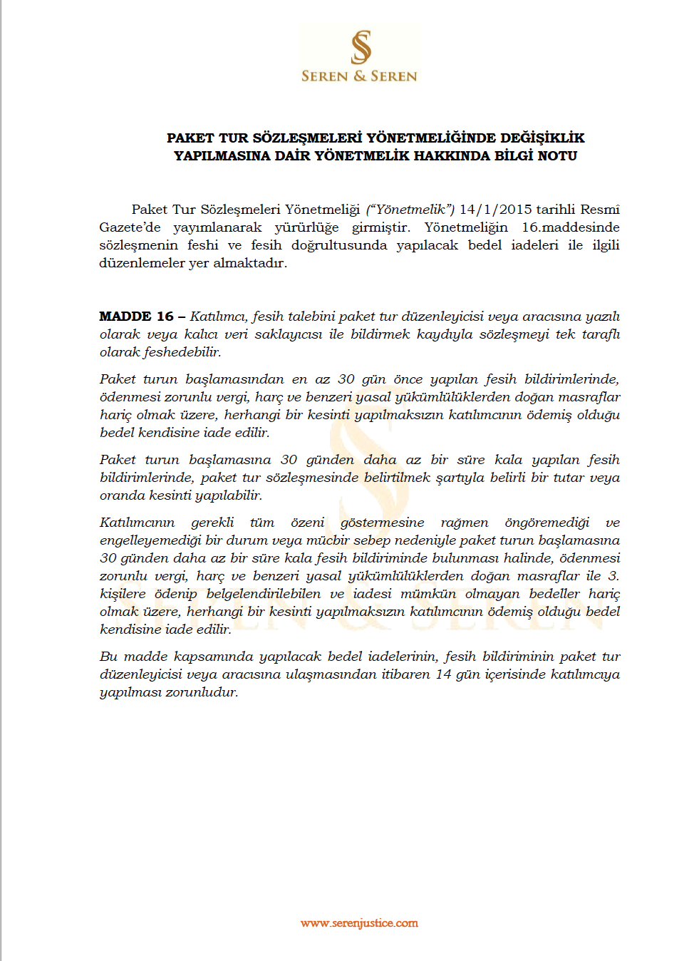 PAKET TUR SÖZLEŞMELERİ YÖNETMELİĞİNDE DEĞİŞİKLİK YAPILMASINA DAİR YÖNETMELİK HAKKINDA BİLGİ NOTU